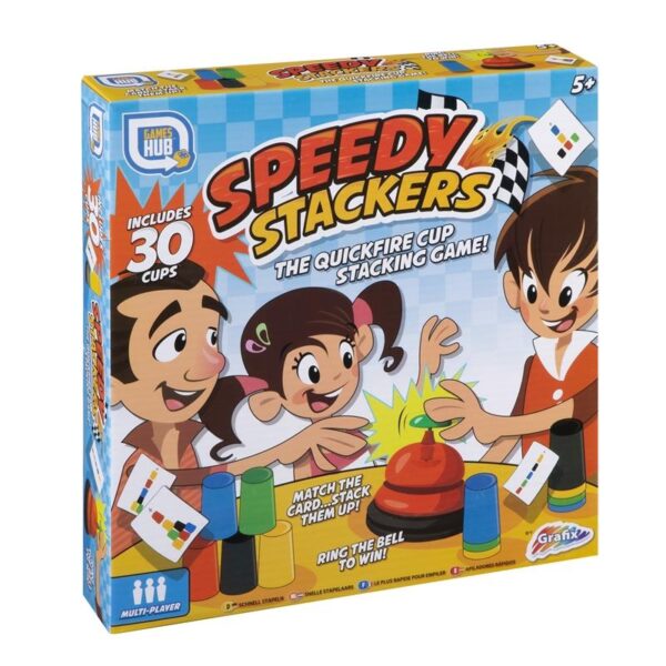 Stapel zo snel als je kunt de bekers op de juiste manier op elkaar! Klaar!? Druk dan op de bel van het Supersnel Beker Stapelen Spel. Ben jij de eerste die de bel laat rinkelen, dan ontvang jij de opdrachtkaart. Degene die op het einde van het Supersnel Beker Stapelen Spel de meeste kaarten heeft verzameld, is de winnaar. Inhoud: 24 opdrachtkaarten, 30 gekleurde bekers in 5 kleuren, een bel en instructies. Leeftijd vanaf 5 jaar